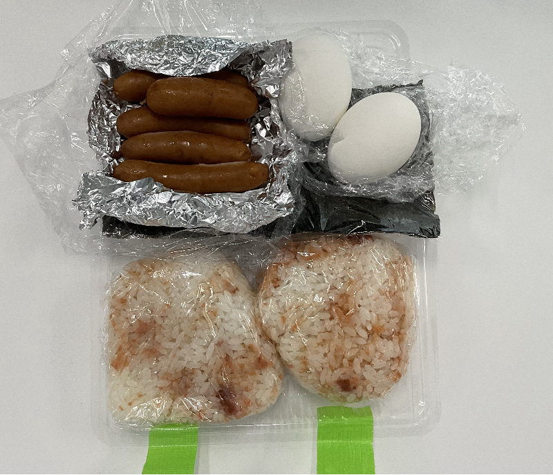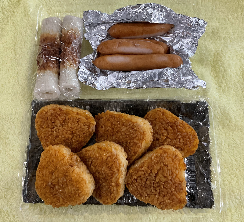 冷凍のおにぎり。少し硬くても口の中で溶かす。