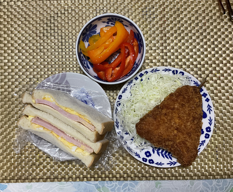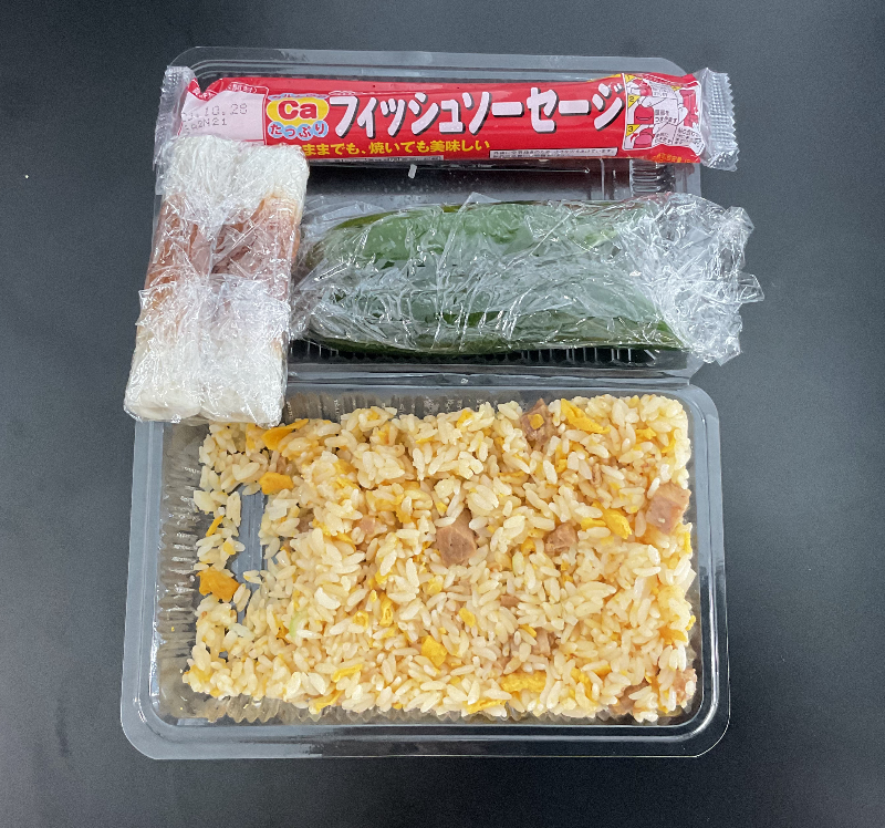 - アジフライ、卵焼き、カニカマ、キャベツ