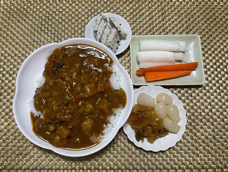 - プルーン、キムチ、キュウリ、トマト、ミックスナッツ、もずく、いりこ、ごま、玉ねぎ、キャベツ、のサラダ
